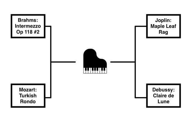 Have you been playing Piano Madness? We’ve narrowed it down to the Final Four! Will Scott Joplin's “Maple Leaf Rag” continue to surprise as it goes head-to-head with Debussy's “Claire de Lune”? And who could predict a winner in the head-to-head match of Mozart versus Brahms? Vote now and help decide what Filippo will play on Piano Day!
