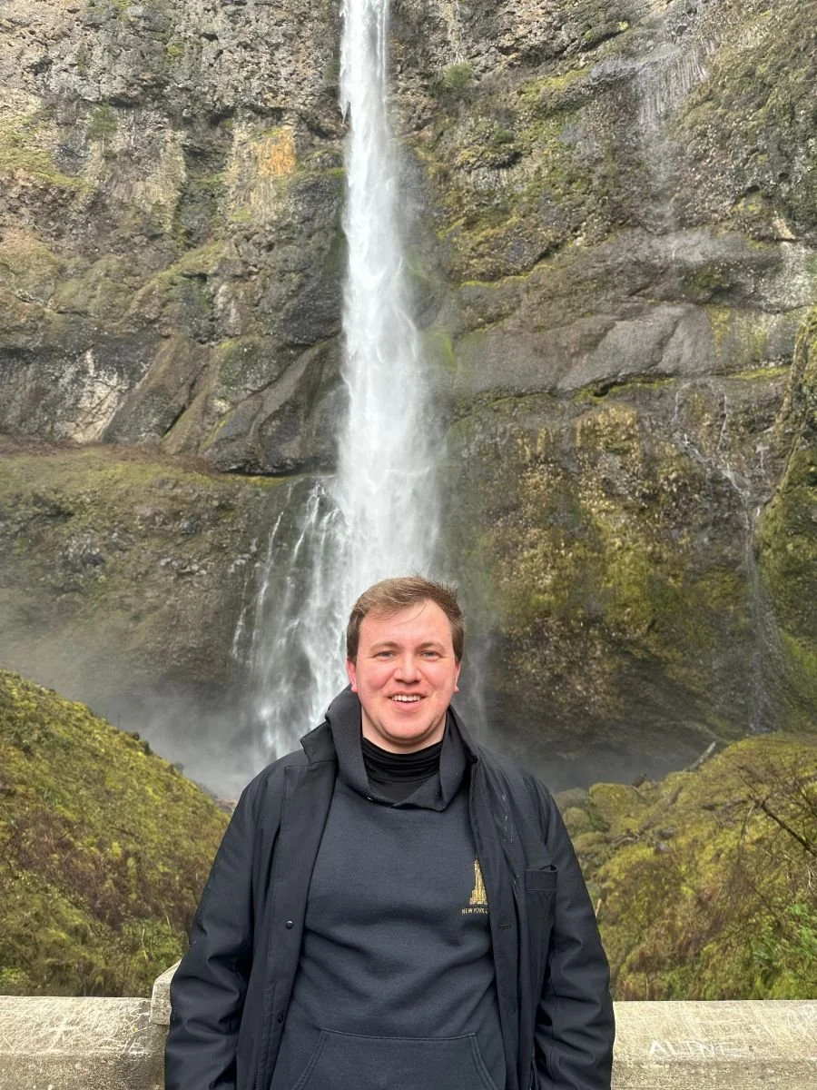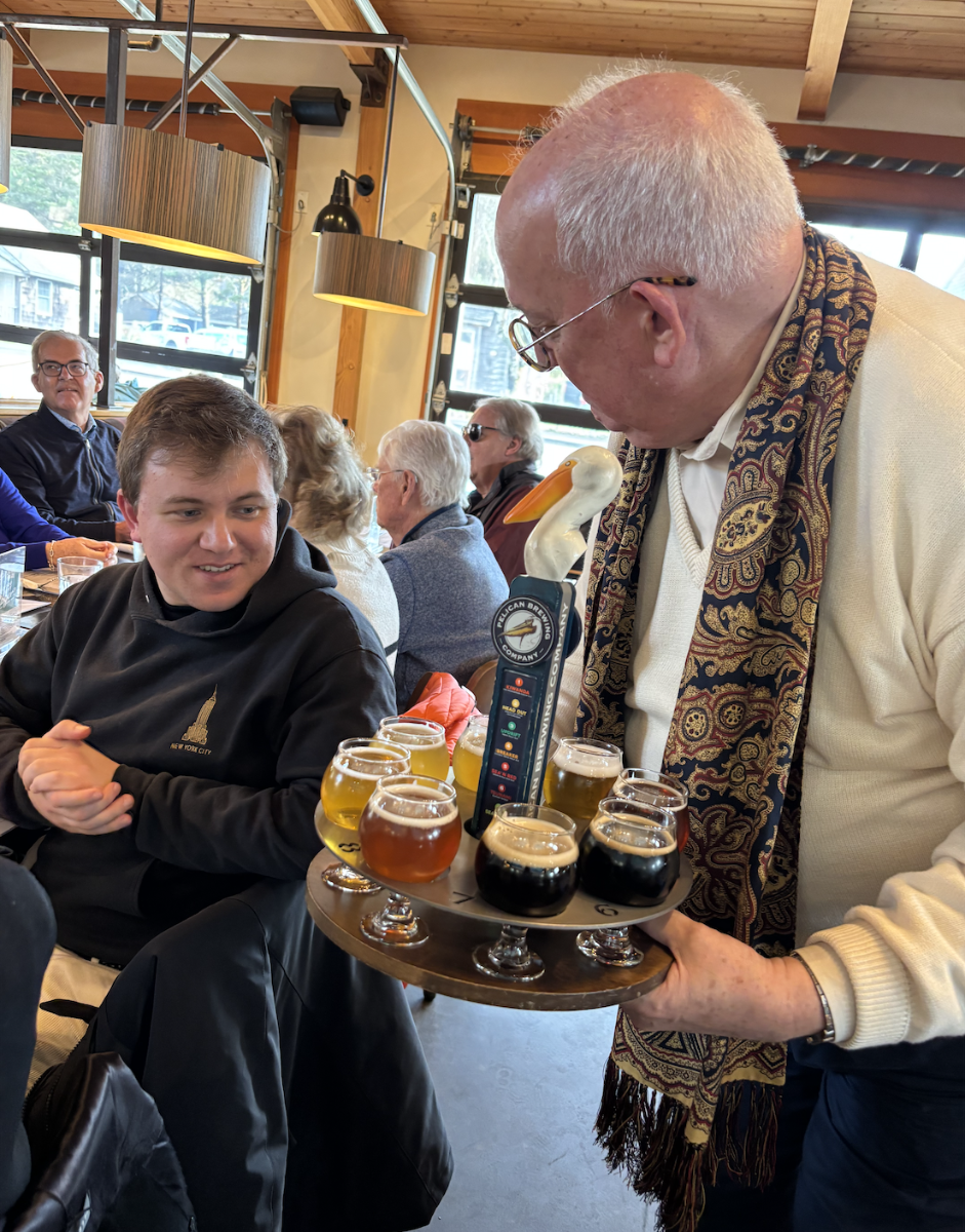 Grinning at the glory of Multnomah Falls, beer tasting with Bill Crane at Pelican Brewing, taking in big views with PPI Board member Kristy Moore.