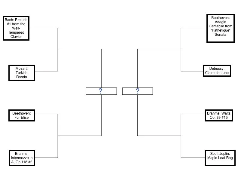 4) Please play the second round of Piano Madness – enter the Elite Eight! (Can you believe that Scott Joplin’s “Maple Leaf Rag” upstaged Schumann’s “Träumerei”?!)